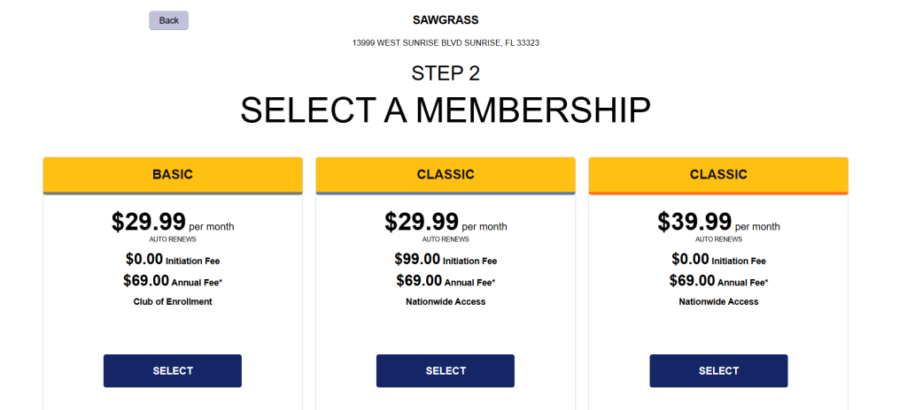 At specific locations like Sawgrass, the Premier Membership waives the initiation fee entirely and locks in at $44.99 monthly, granting entry to advanced classes and equipment.