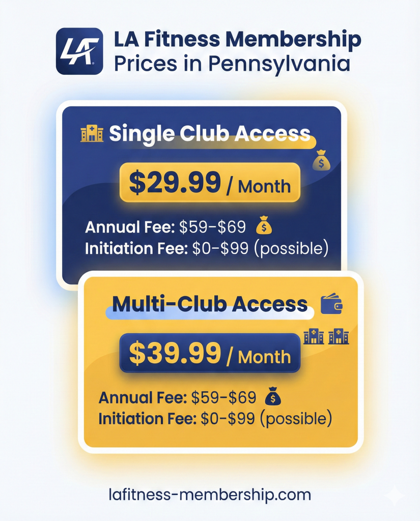 ★ LA Fitness membership prices in Pennsylvania typically start at $39.99 monthly for multi-club access,
